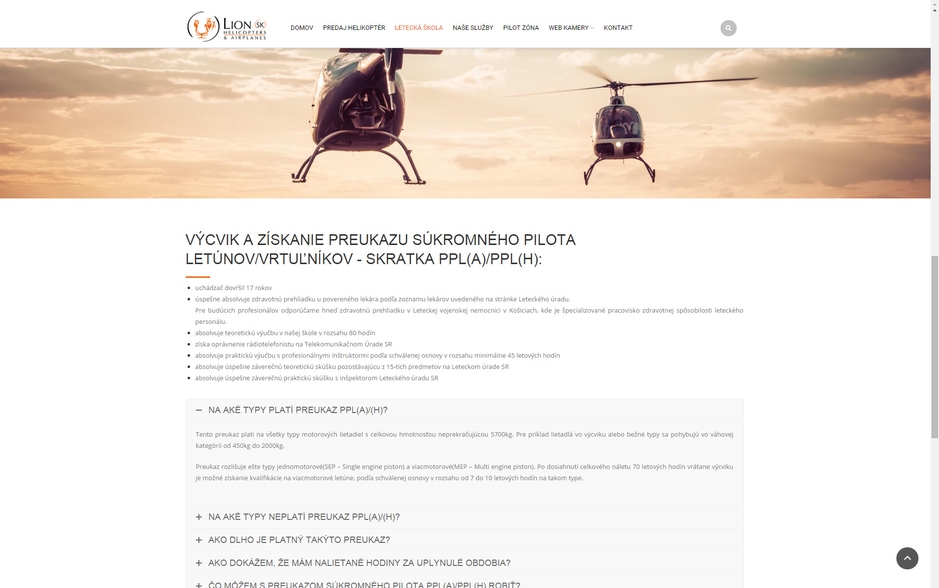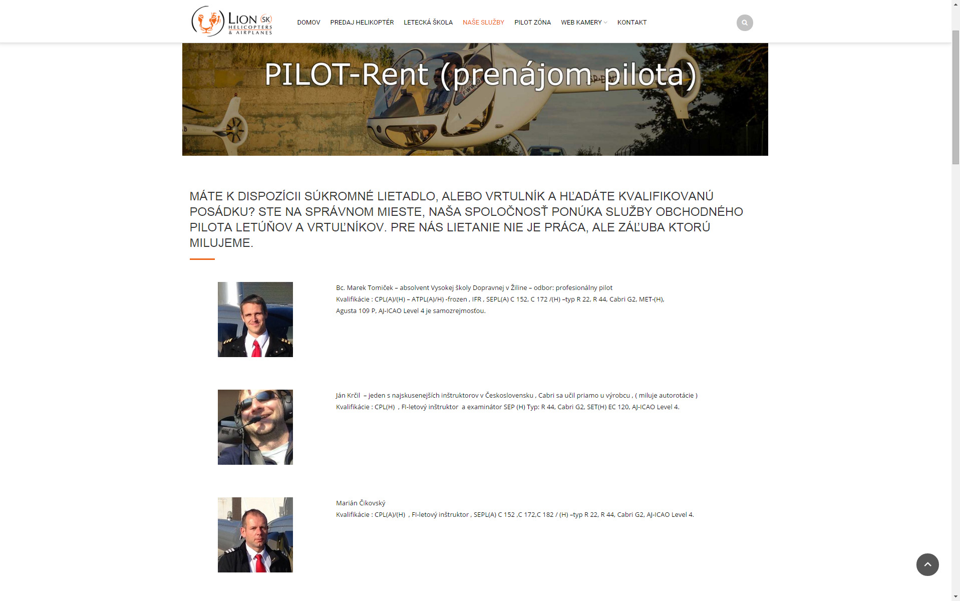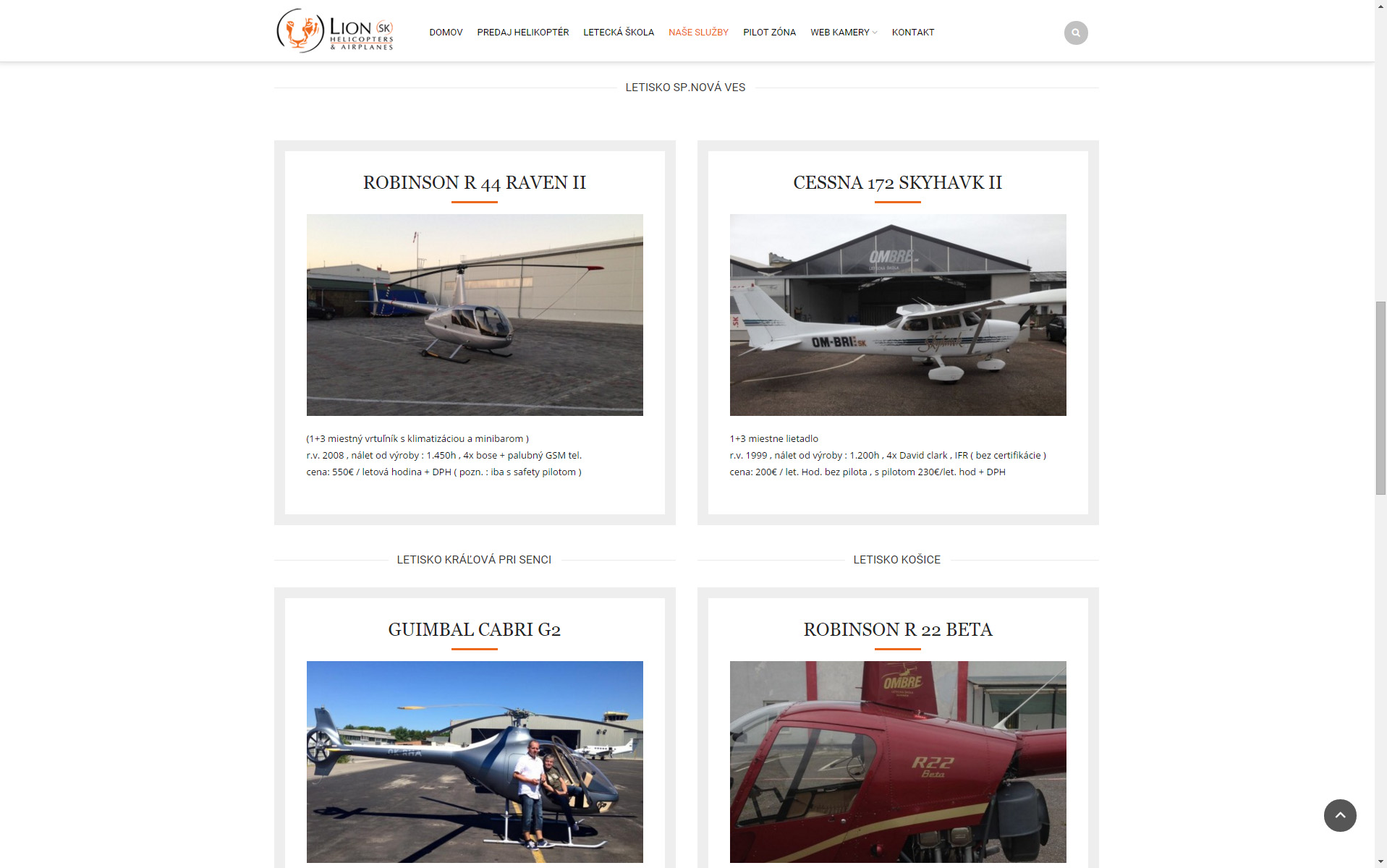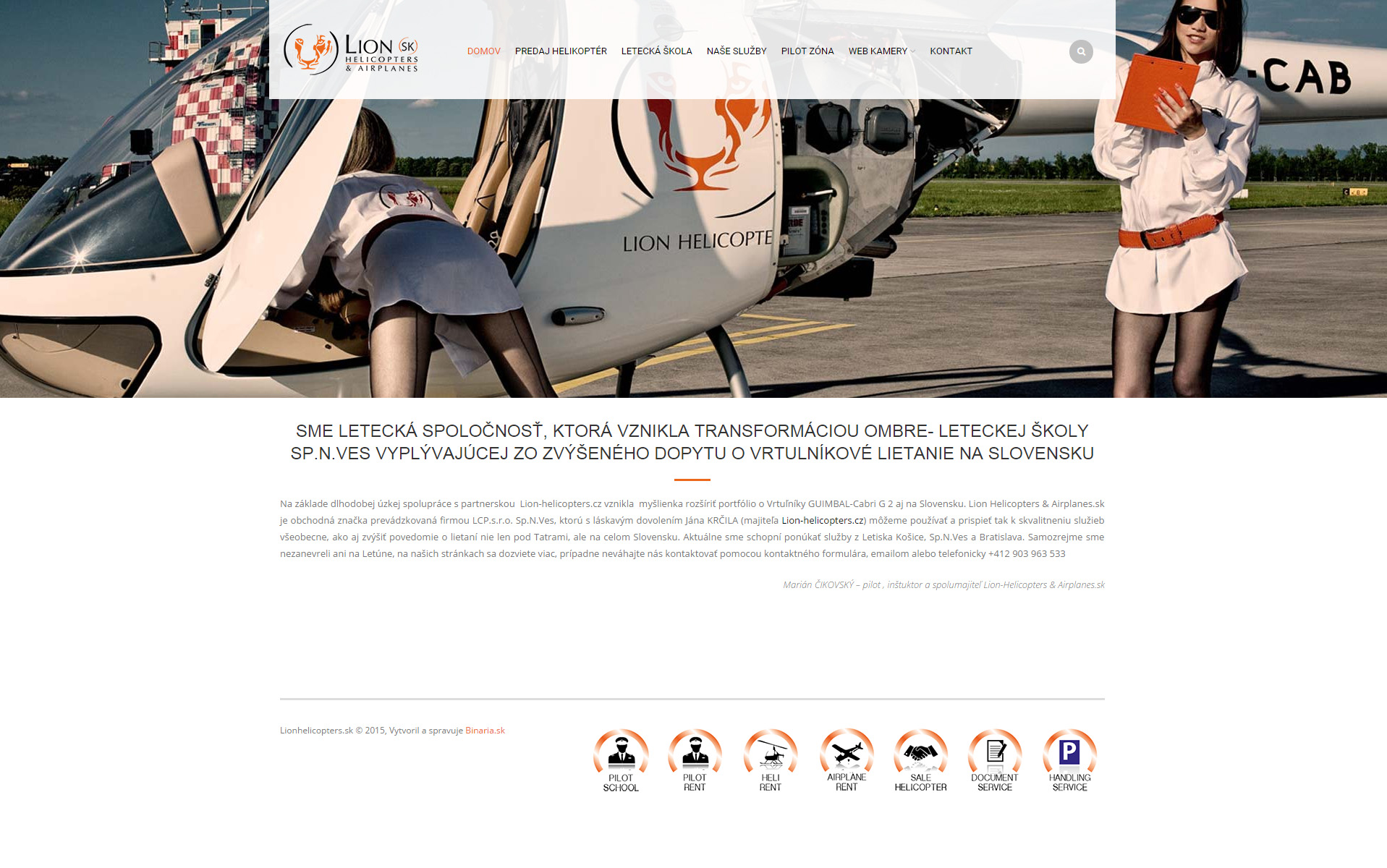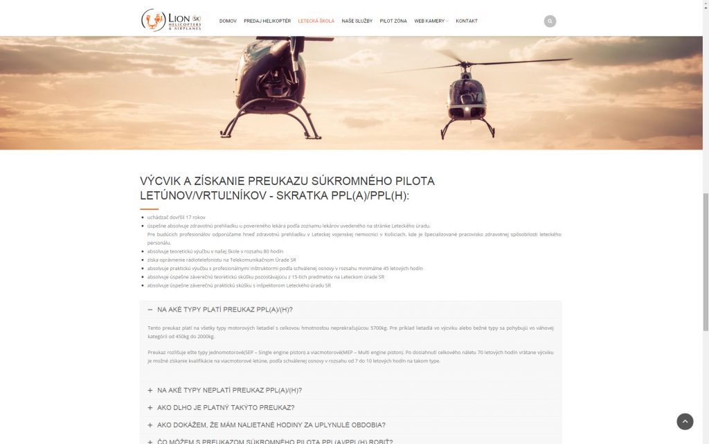 Web prezentujúci leteckú spoločnosť obsahujúci informácie ohľadom predaja helikoptér, leteckej školy a ďalších služieb prezentovaných prostredníctvom prehľadných textových prvkov a fotogalérii.