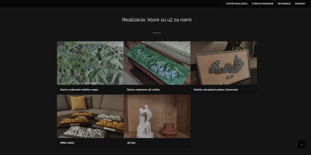 Jednoduchý prezentačný web pre službu 3D tlače reliéf máp.
