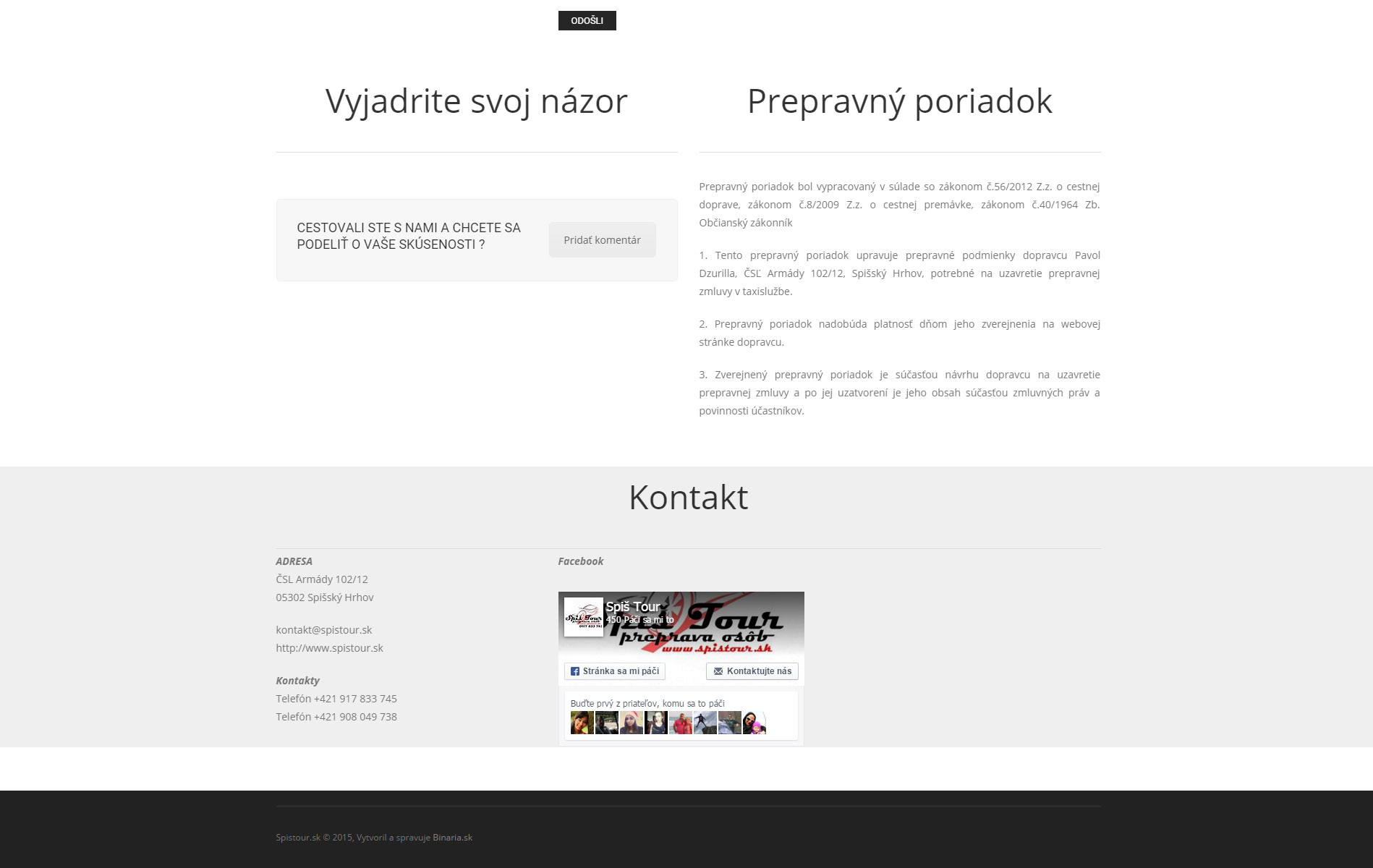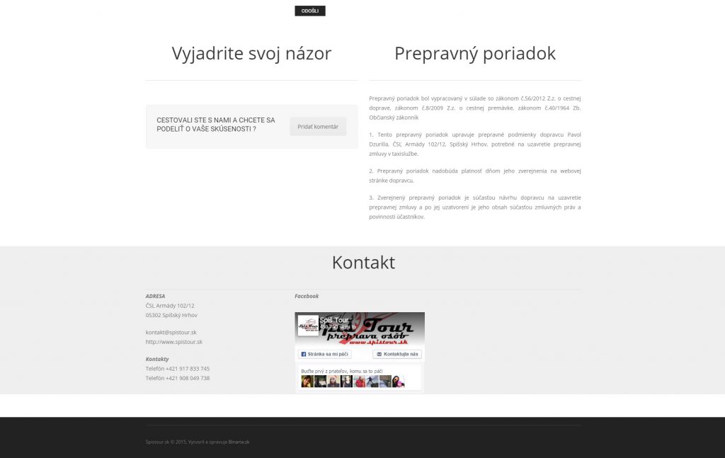 Prezentačný web pre službu automobilovej dopravy pasažierov do zahraničia. Okrem základných informácii o službe stránka obsahuje aj rezervačný formulár a knihu návštev s moderovaním príspevkov.
